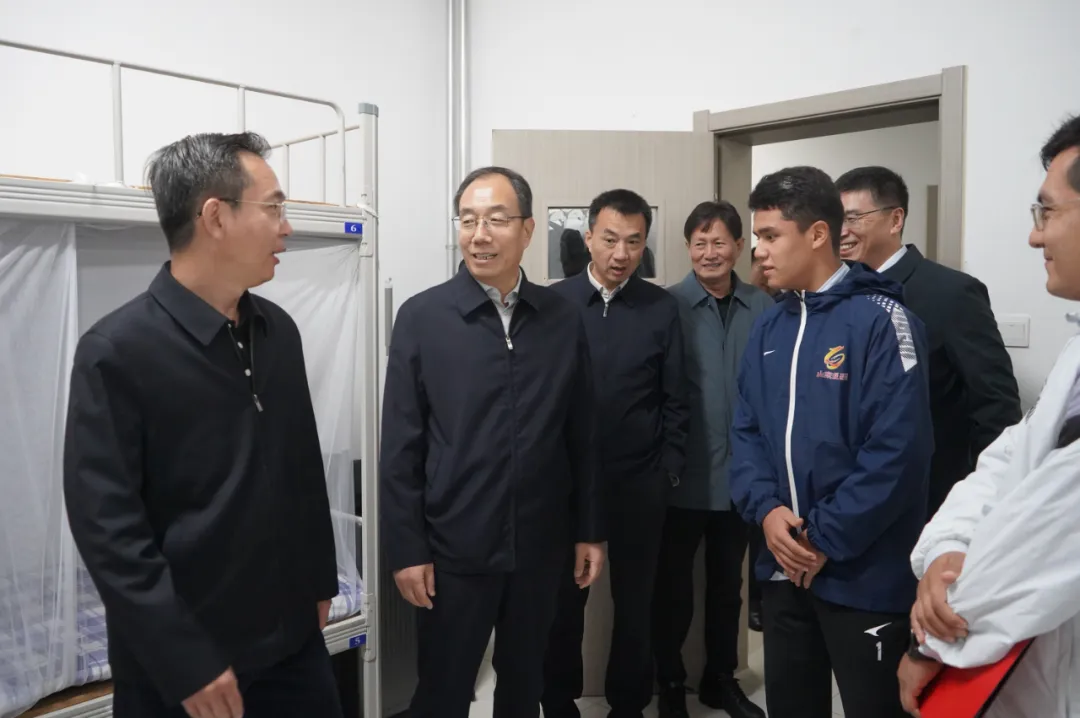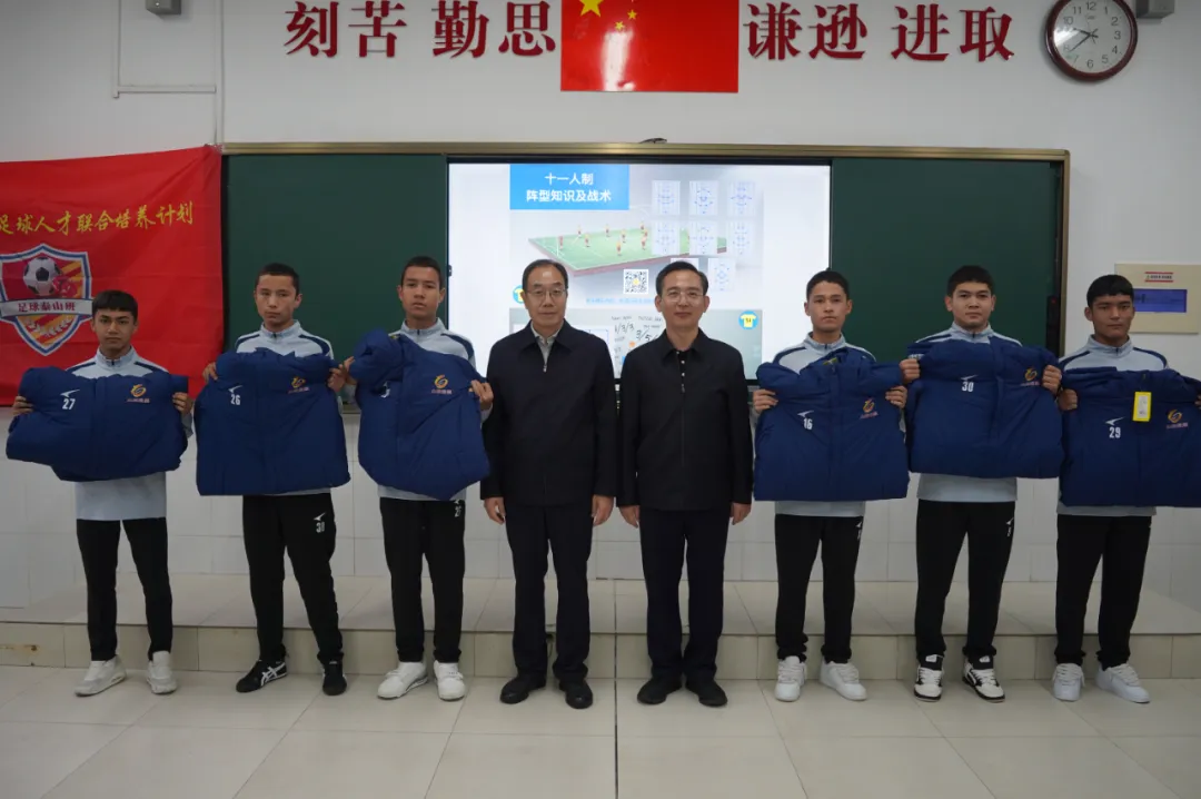在足球训练场上,袁良一行观看了“足球泰山班”学员的日常训练与技能展示。学员们精神饱满、斗志昂扬,展现出扎实的基本功和良好的团队配合。袁良对学员们展现出的拼搏精神和训练成果给予高度评价,勉励他们珍惜机会、刻苦训练、全面发展,将来为家乡和祖国贡献力量。