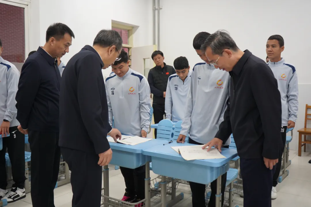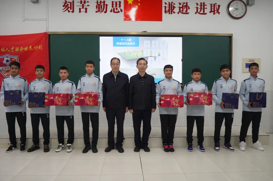听取汇报后,袁良对山东师范大学附属中学在“足球泰山班”建设中所取得的阶段性成果表示充分肯定。他指出,教育援疆是对口支援工作中的关键一环,具有基础性、先导性和全局性的重要意义。山东师范大学和山东师范大学附属中学立足实际,精准发力,打造出“足球泰山班”这一具有示范意义的特色项目,是鲁喀教育合作的一次成功实践。袁良强调,下一步要继续总结经验、深化内涵、拓展外延,推动教育援疆工作从“输血”向“造血”转变,切实助力新疆青少年成长成才,为促进民族团结、巩固边疆稳定、服务区域协调发展作出新的更大贡献。