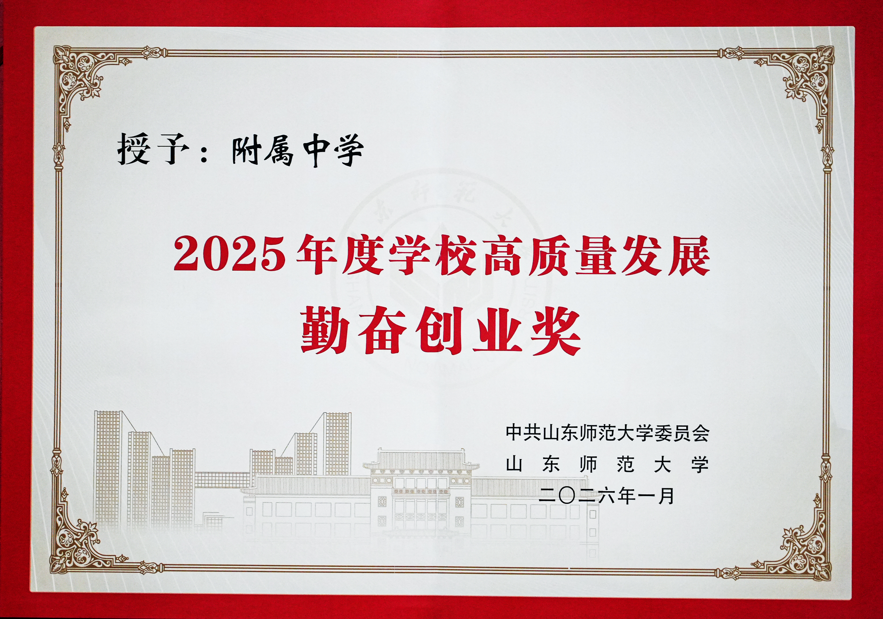 勤耕不辍育桃李,创新有为谱华章——山东师大附中荣获山东师范大学2025年度高质量发展勤奋创业奖