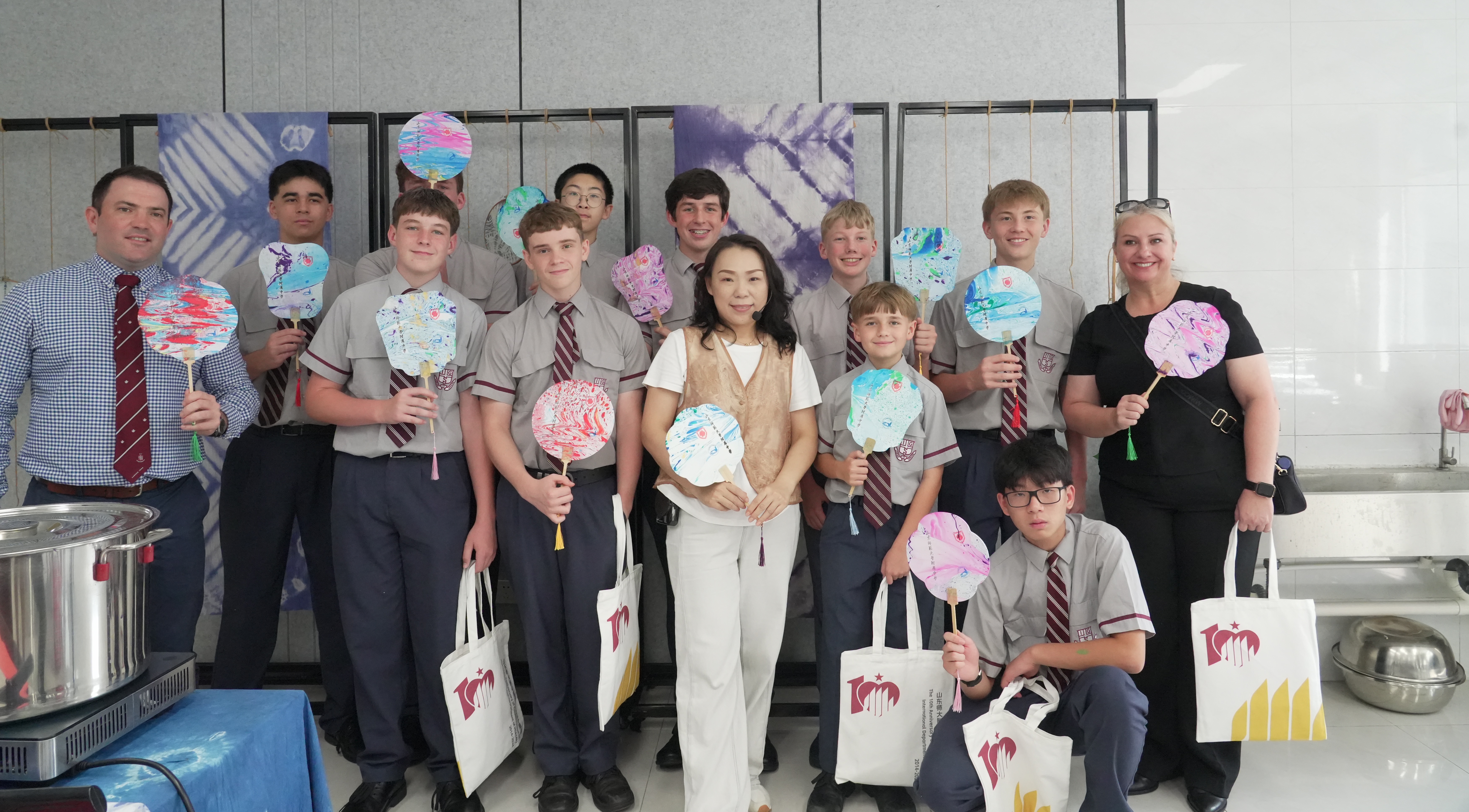 Ipswich Grammar School师生一行在国际部师生的陪同下,参观校史馆,体育馆。竞赛部主任薛茂昌介绍AI人工智能实验室。随后,国际部师生为来访的朋友们举行欢迎仪式,国际部学生为来访的客人吹奏了单簧管曲目,表达对远道而来朋友的热烈欢迎。国际交流合作部副主任刘伟代表学校赠送国际部成立十周年文创纪念品,同时接受Ipswich Grammar School的礼物赠品,两校共同期待赓续友好关系加深互动交流。在国际部教室,两校学生组成活动小组,在外教Jonathan老师的带领下,一起进行了Spaghetti Tower Challenge(面条塔大作战)的团队合作活动,虽然初次相见,但是学生们迅速熟络起来,并且合作默契,顺利完成了团队任务。在美术王欣老师的专业讲解下,两校师生同上一堂课,领略中国传统文化工艺——剪纸和非遗文化飘漆扇的独特魅力。