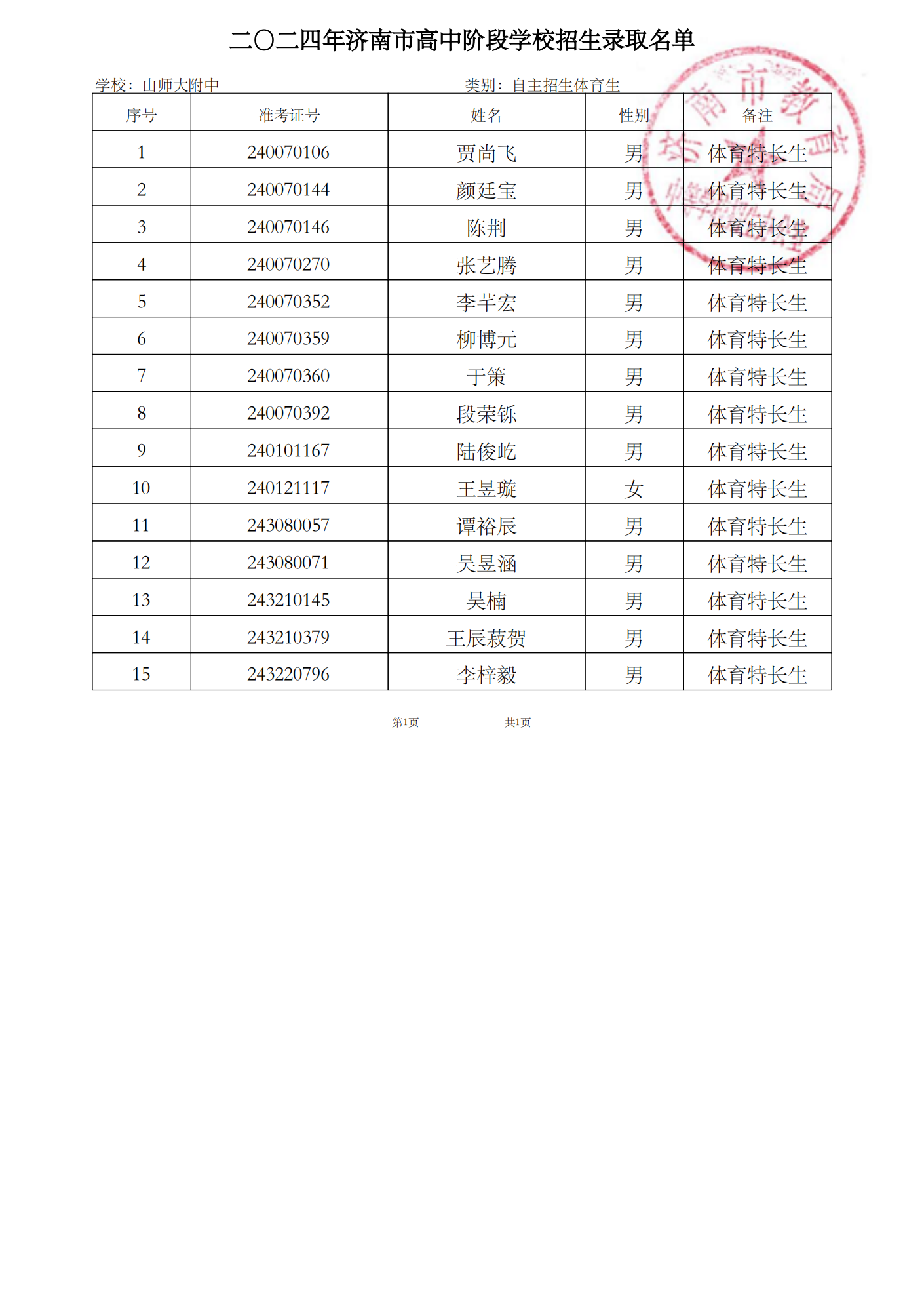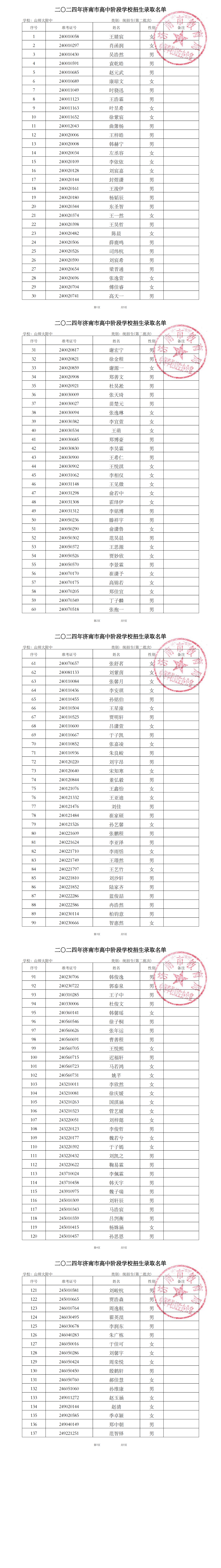按照《济南市2024年高中阶段学校招生工作意见》的有关要求,现将我校录取情况公布如下: