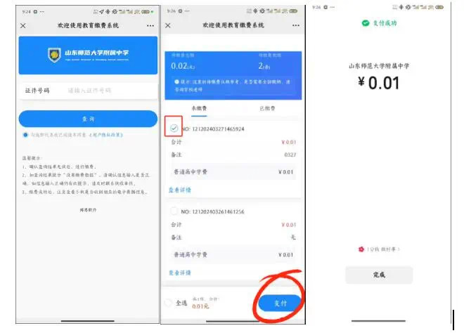 山东师范大学附属中学在线缴费指南