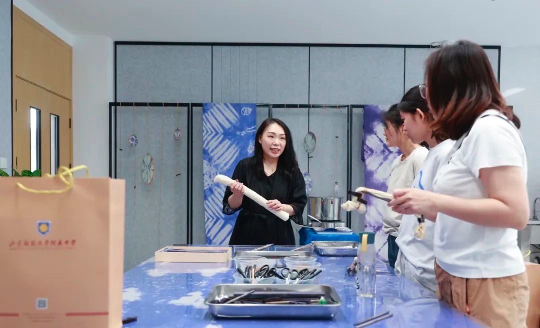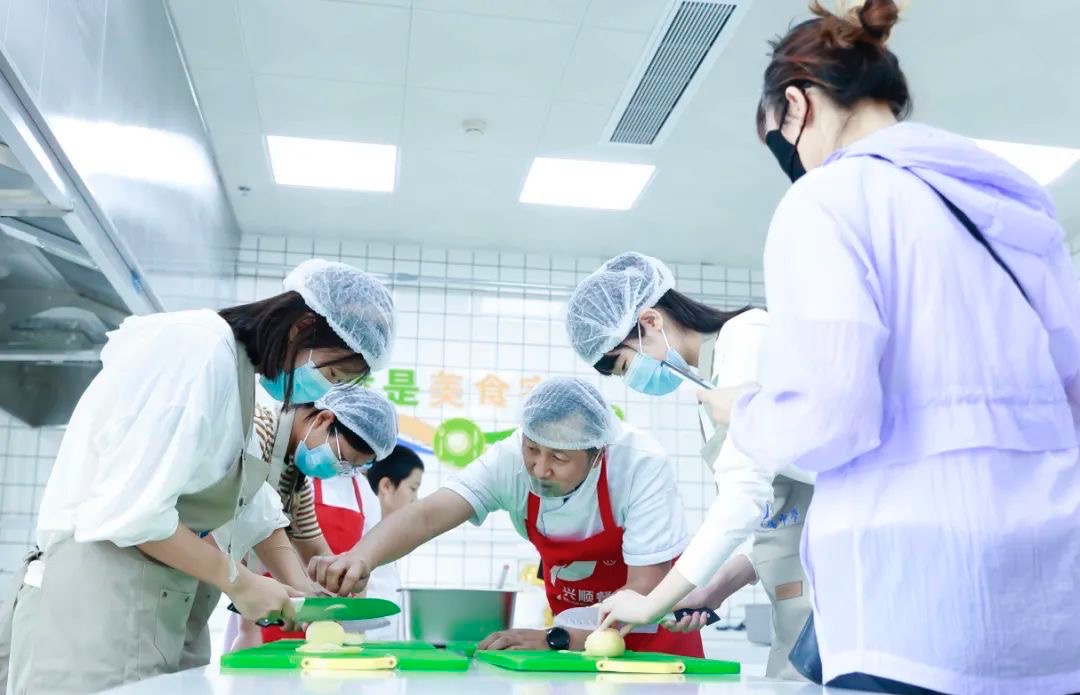 由高一学生志愿者组成的“志愿者天团”也是校园里最靓丽的风景线。训练有素、精神昂扬的志愿者全程陪同学生和家长,一起解锁学校生活环境和校园文化。在社团展示区,漫画、文学、新媒体等社团展示活动丰富多彩,引人注目。学校提供的扎染课和烹饪课聚拢了一大批学生前来,开放日的体验感更是瞬间拉满。校服熊玩偶、校服熊钥匙链等具有附中特色的文创产品于细节处展示了学校的文化内涵,夏日清凉扇、冰激凌更是让每一位学生和家长感受到了学校的人文关怀。