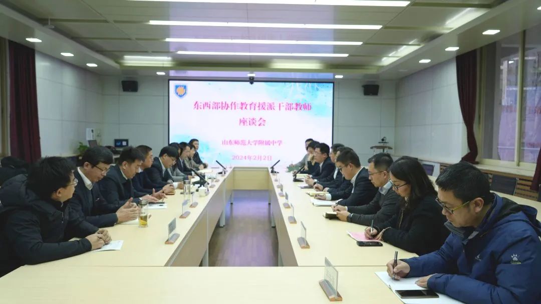 为做好各项准备工作,2月2日下午,山东师大附中召开东西部协作教育援派干部、教师座谈会。会上,甘肃临夏州教育局副局长吕福昌,山东师大附中党委书记杨仁勇,副校长、幸福柳分校执行校长王彬,副校长、校本部执行校长杨平,副校长李成金,学校即将赴疆援疆干部王志民,即将赴甘援甘教师林海、徐同和梁坤三位老师,援甘返济教师秦然、王晗、刘伟以及学校党政办公室、教务处、教科处和数学、英语、物理等相关处室负责人参加会议。