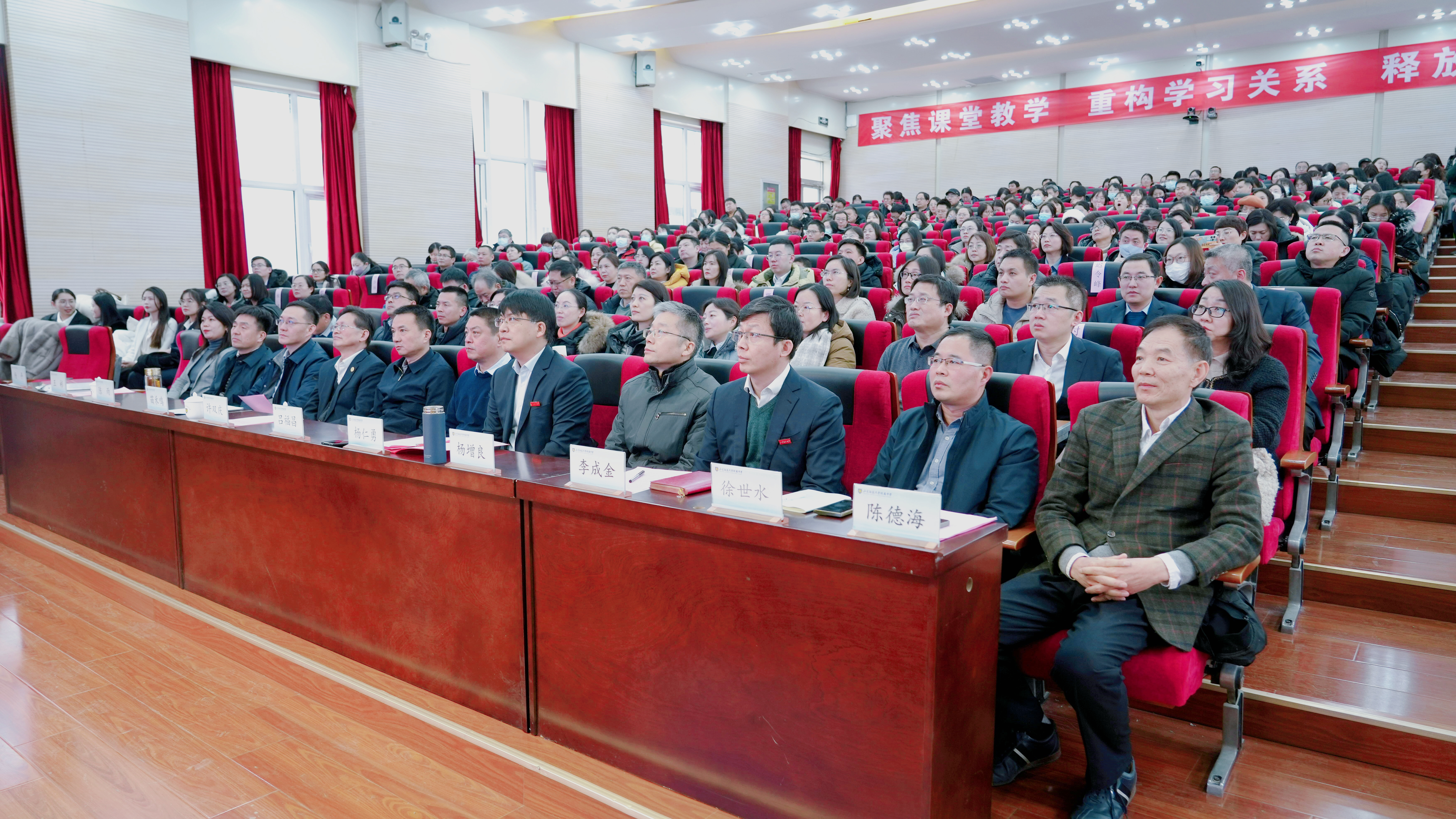 杨仁勇首先对学校2023年度工作进行全面详实的梳理和总结。他指出,2023年,学校强化党建引领,提升高质量发展核心驱动力。加快学校治理体系建设,稳步推进党组织领导的校长负责制,优化党建与业务融合,以党建引领激发教师专业提升价值内驱力,赋能学校发展。