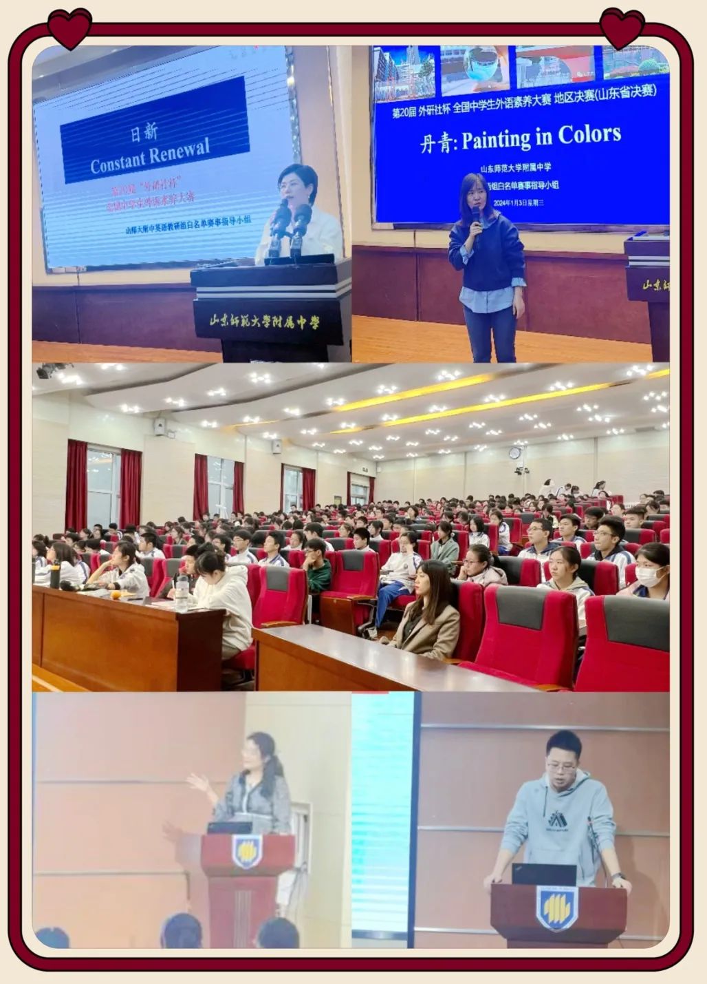 山东师大附中英语组全体教师高度重视,始终贯彻“优质教研、高效教学、科学育人”的教学理念,以全面培养学生的核心素养为原则,积极组织此赛事,英语组白名单赛事指导小组先后对复赛和地区决赛题目进行破题讲座,全体英语教师精心辅导,助力学生成长,培养学生热爱学习、勇于挑战、创优争先的优秀品质。祝贺所有获奖学生,并期待晋级国赛的同学取得好成绩。