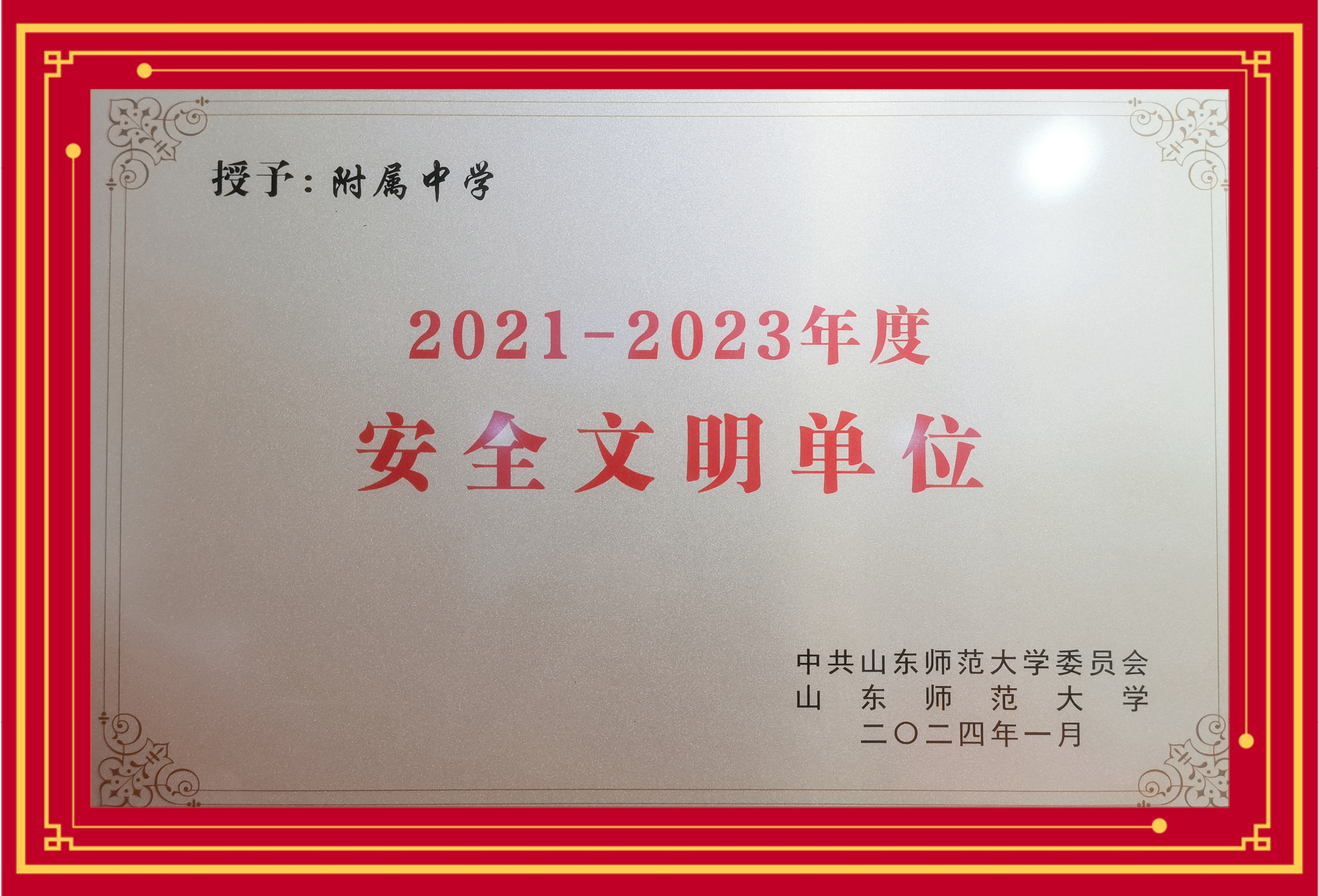 山东师大附中荣获山东师大2021-2023年度安全文明先进单位