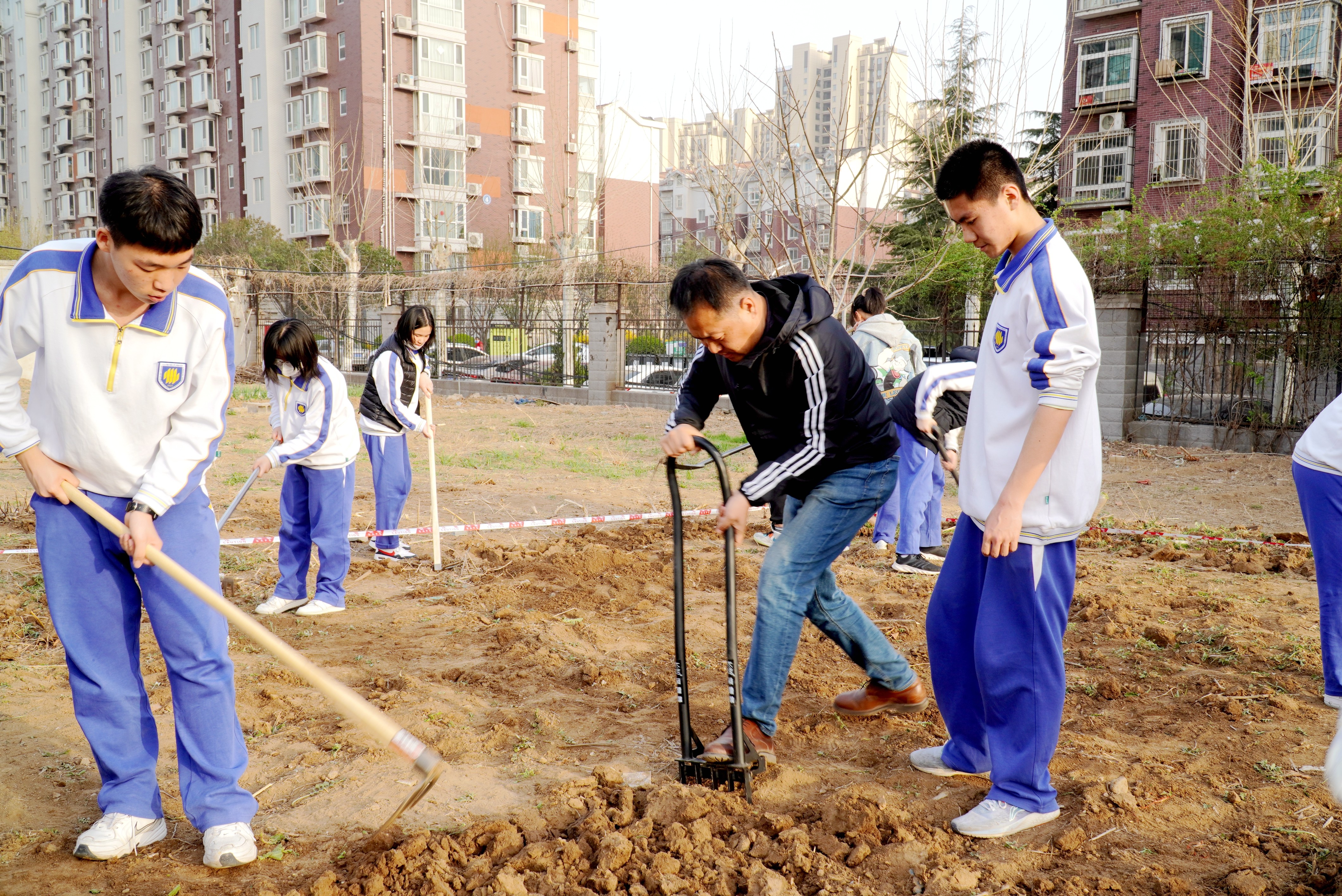 劳动教育在山东师大附中有着优良传统,是学校70多年发展历程中重要的教育内容之一。夯实卫生打扫、家务劳动等生存性劳动的基础,以生产性劳动活动和实践作为特色课程,强调家庭平台,发展交往性劳动,开发校外社会实践基地,以综合实践课程为依托,山东师大附中构建了“基础+特色+平台”的立体化校本劳动教育课程体系,完美实现了劳动教育和智育、体育、美育、德育的融合共生。