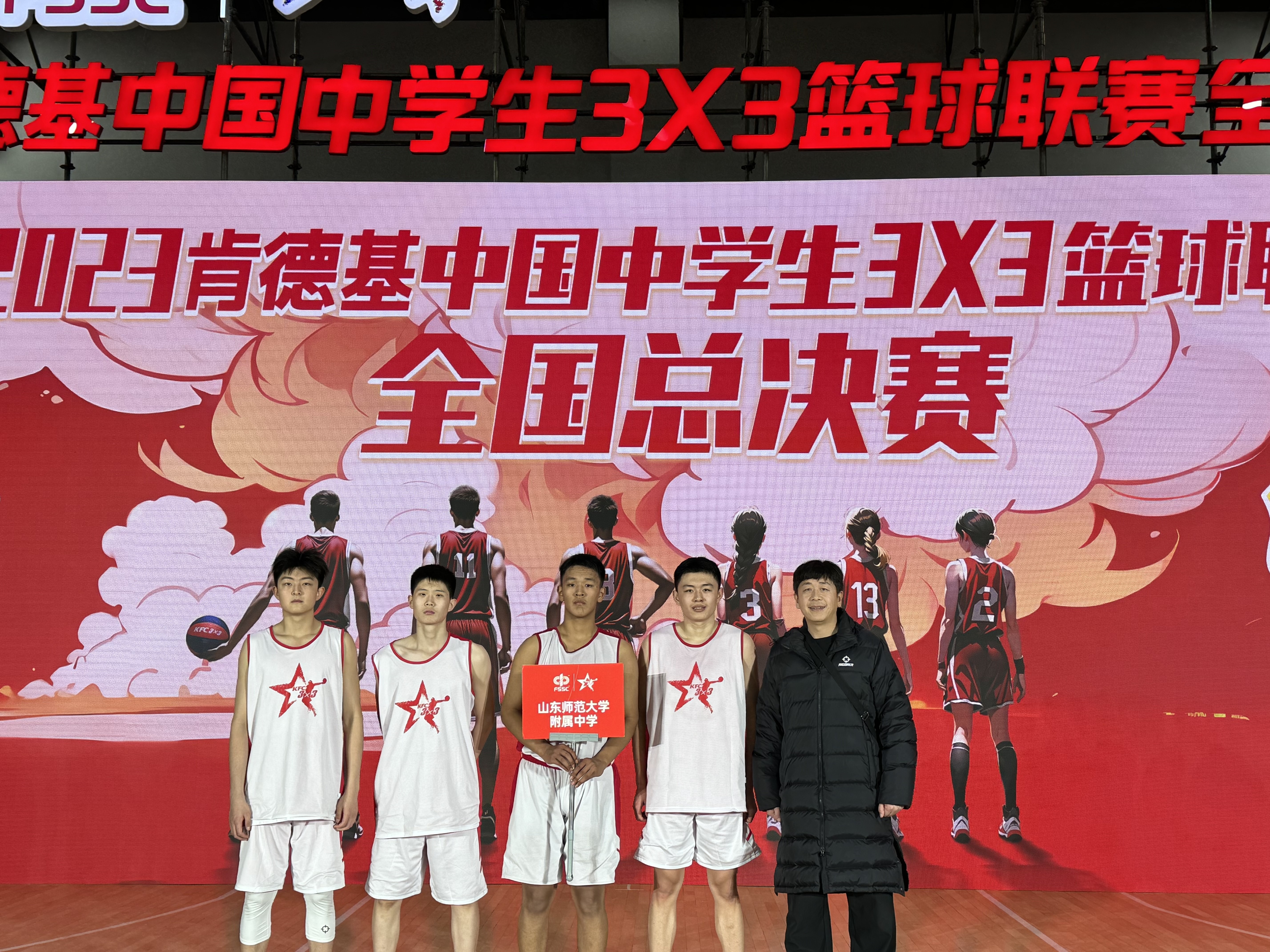 让我们一起回顾这一路的征程。2023肯德基中国中学生3X3篮球联赛在12月打响,山东师大附中男篮派出杨天睿、冯俊畇、孔令赜、宋建威、田玉良、王禹涵六名同学参赛,在第一阶段城市赛比赛中,附中男篮强势夺冠,获得参加分区赛资格。