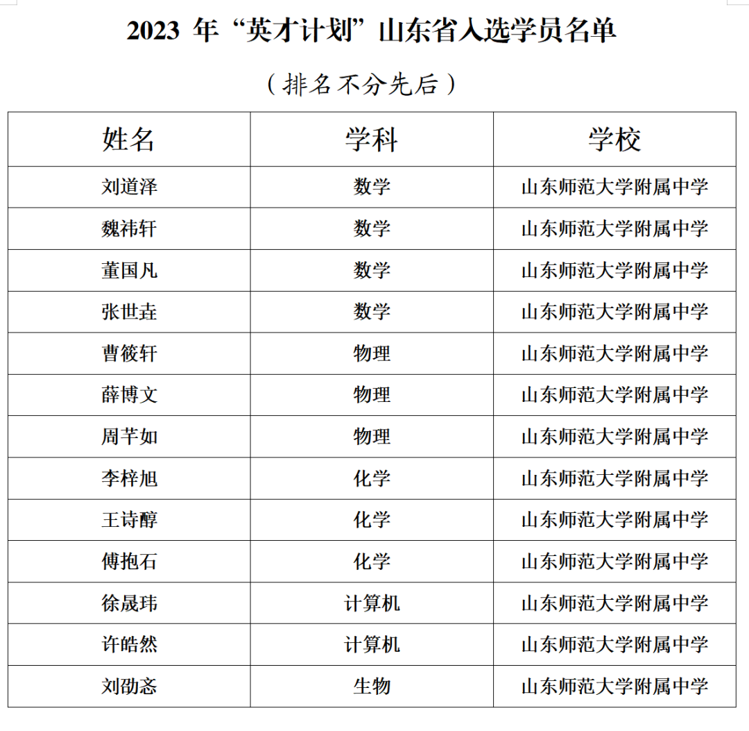 全省之最!山东师大附中13名同学入选全国中学生英才计划