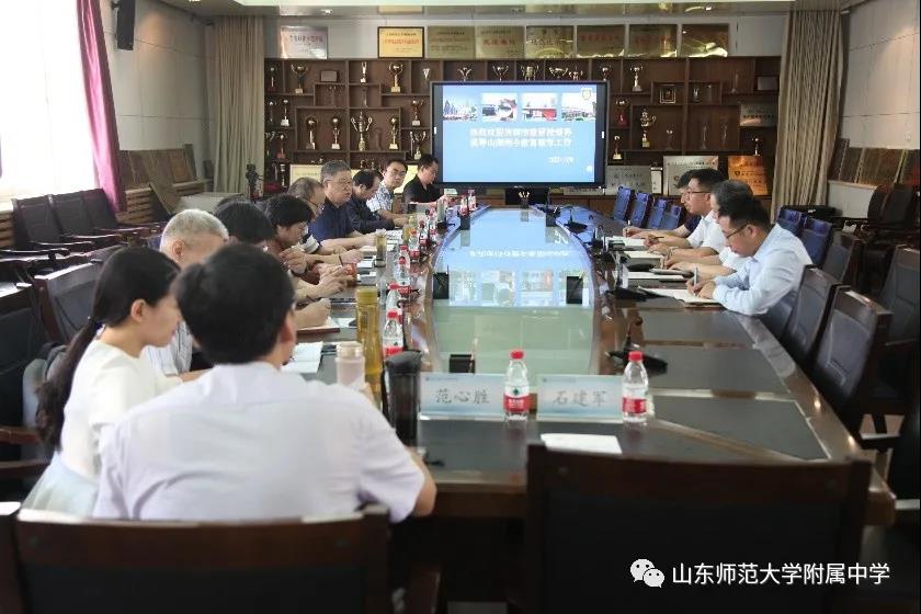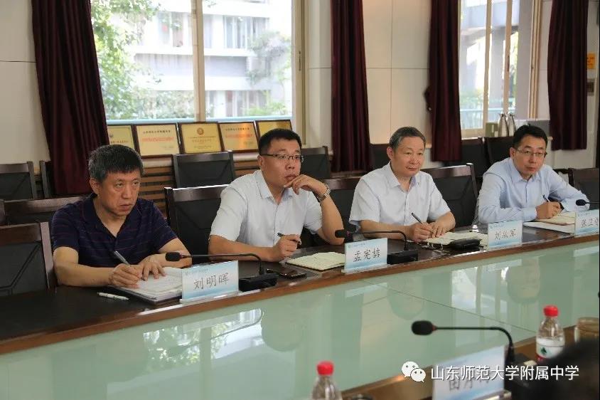 孟宪喆就学校教育理念、办学特色、教师队伍建设等方面进行了详细介绍,并对学校取得的教学成果和特色活动等进行了汇报。张卫普对学校教学工作、课程落实和教学教研工作进行了汇报。田序海对附中教育教学工作表示了肯定,并对学校进一步加强新高考试题研究,提高尖子生培养等方面做出了指导。