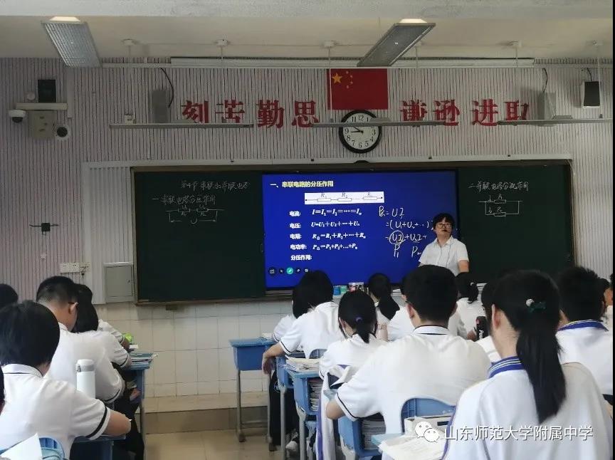 教研院院长助理田序海视导了杨远玲老师的《串联电路和并联电路》新授课和宋鑫玉老师的《动力学中的“板块”模型》复习课。田序海指出,杨远玲老师教学思路清晰,课堂结构严谨,内容丰富充实,很好地把握住新课标的要求,教学过程中始终引导学生,启迪学生思维,渗透物理思维和方法,抓住了能力培养与知识掌握双落实。宋鑫玉老师备课充分,教学逻辑严谨,物理过程分析透彻,重视学生课堂参与度,课堂教学体现了对新高考的深入研究,在教学过程中培养学生物理推理能力和模型建构能力,展现了扎实的教学功底。从两位老师的课可以看出物理组对新高考、新课标的研究能力正逐步提升,展示出了物理组集体教研的合力,体现了物理组老师对新高考和物理核心素养的深度理解,展现了物理组团结协作、凝心聚力的精神。