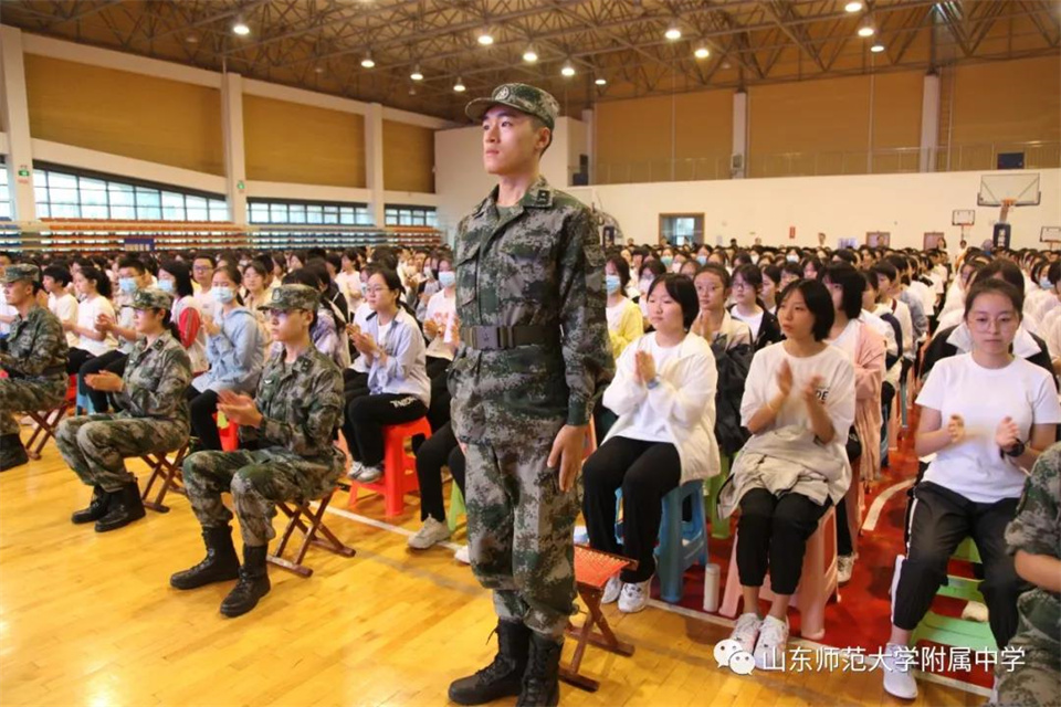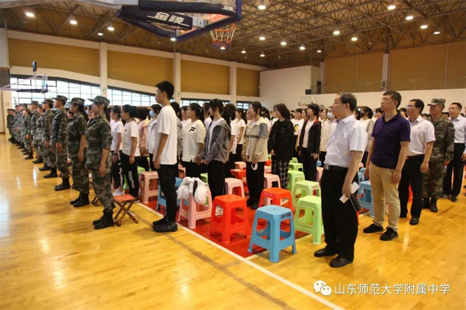 8月31日上午,山东师大附中校本部2021级新生开学典礼暨军训动员大会在体育馆隆重举行。山东师大附中副校长、校本部执行校长刘从军,军训团团长侯大阪,校本部执行校长助理刘明晖,政教处主任徐世水,教务处主任张卫普,总务处主任卢光涛,党政办公室副主任颜炳杰,15位教官和高一年级全体班主任和新生参加大会。大会由高一年级组长孙国旺老师主持。