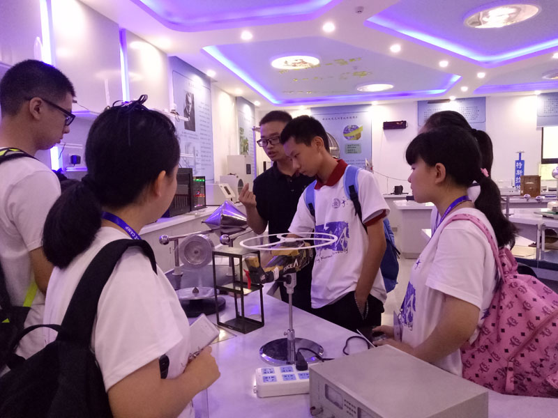 20日上午8:30到11;30,附中营员进入北师大物理国家重点实验室体验相关课程和体验式教学。奇妙的物理现象给营员留下了深刻的印象,北师大学生与老师生动的讲解让营员对物理知识产生了浓厚的兴趣。当日下午,虽然北京的大雨为大家心头添上一点点阴霾,大家还是走进教学楼,参加北师大王乃彦院士的讲座,王乃彦院士虽已到耄耋之年,但他对科学的激情与热爱,对核物理的贡献深深的感动了我们队每一位营员。讲座之后,王乃彦院士不顾身体的不适,认真回答营员的问题,以实际行动展现了院士的风采。