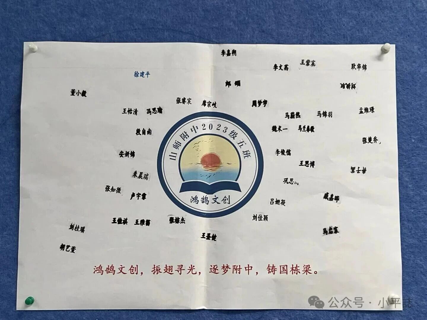 共同拼搏的道路上,有好的对手很重要,有好的伙伴更重要。徐老师用她富有创意的方式为同学们“选择”了伙伴,她提前为每位同学订制了名章,由大家互相抽取,结成学习伙伴。抽取一个,被抽取一个,每人拥有两个伙伴。同学们都被如此有趣的方式吸引,每个人都期待抽出自己的伙伴。手中的印章轻点,如同刻下一个绽放的祝福;带着伙伴的期冀,携手奔赴宏图展翼的前程。同学们把自己的名字印在一起,徐老师也把自己的名字跟同学们印在一起。就这样,38个名字汇聚在一起,38颗心团结在一起,共同为高考拼搏200天!