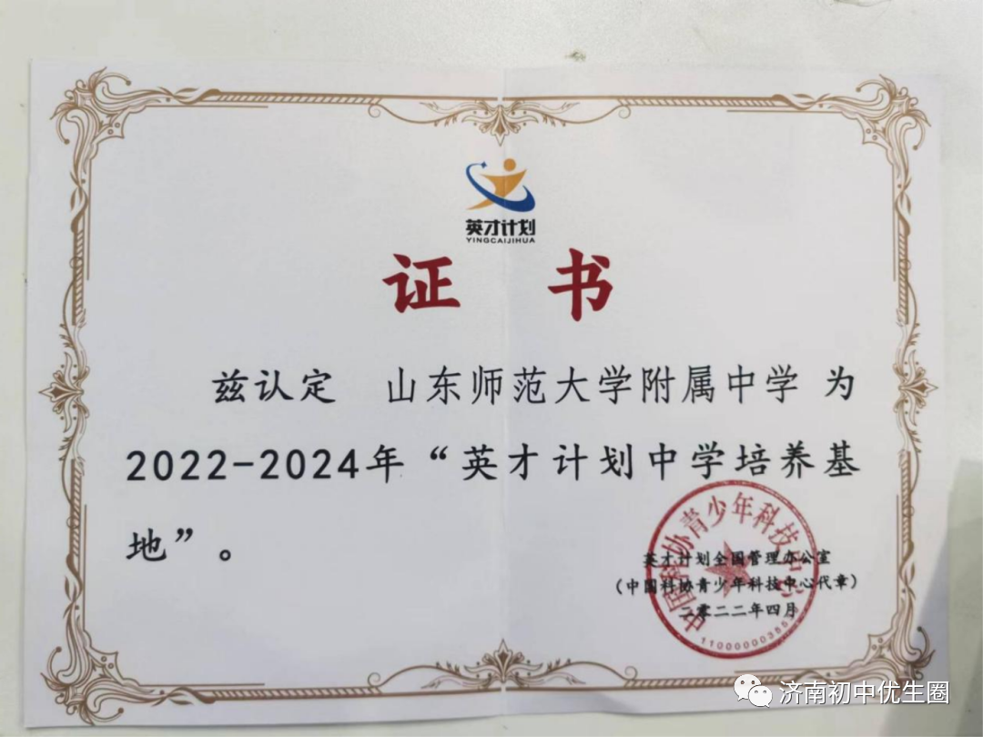 “中学生英才计划”是中国科协、教育部于2013起在全国15个城市20所高校开展的“中学生科技创新后备人才培养计划”试点项目。该计划以发掘学生科学特长,实现拔尖创新学生的早期培养、创新发展为目标,重在为国家科技创新人才培养奠基。学生按照自己的学科兴趣分别师从不同取向的导师,培养方式以导师指导学生参与现有的科研课题为主,培养周期为一般一年,时间以寒暑假为主。这种方式拉长了选拔人才的过程,导师在与学生的交流中,可以发现学生的潜力,然后进行有针对性地培养。中学生英才计划已经成为山东师大附中与高校联手(双高合作)培养拔尖创新学生的重要路径,也是每一个附中学子立志实现科创梦想的重要途径之一。