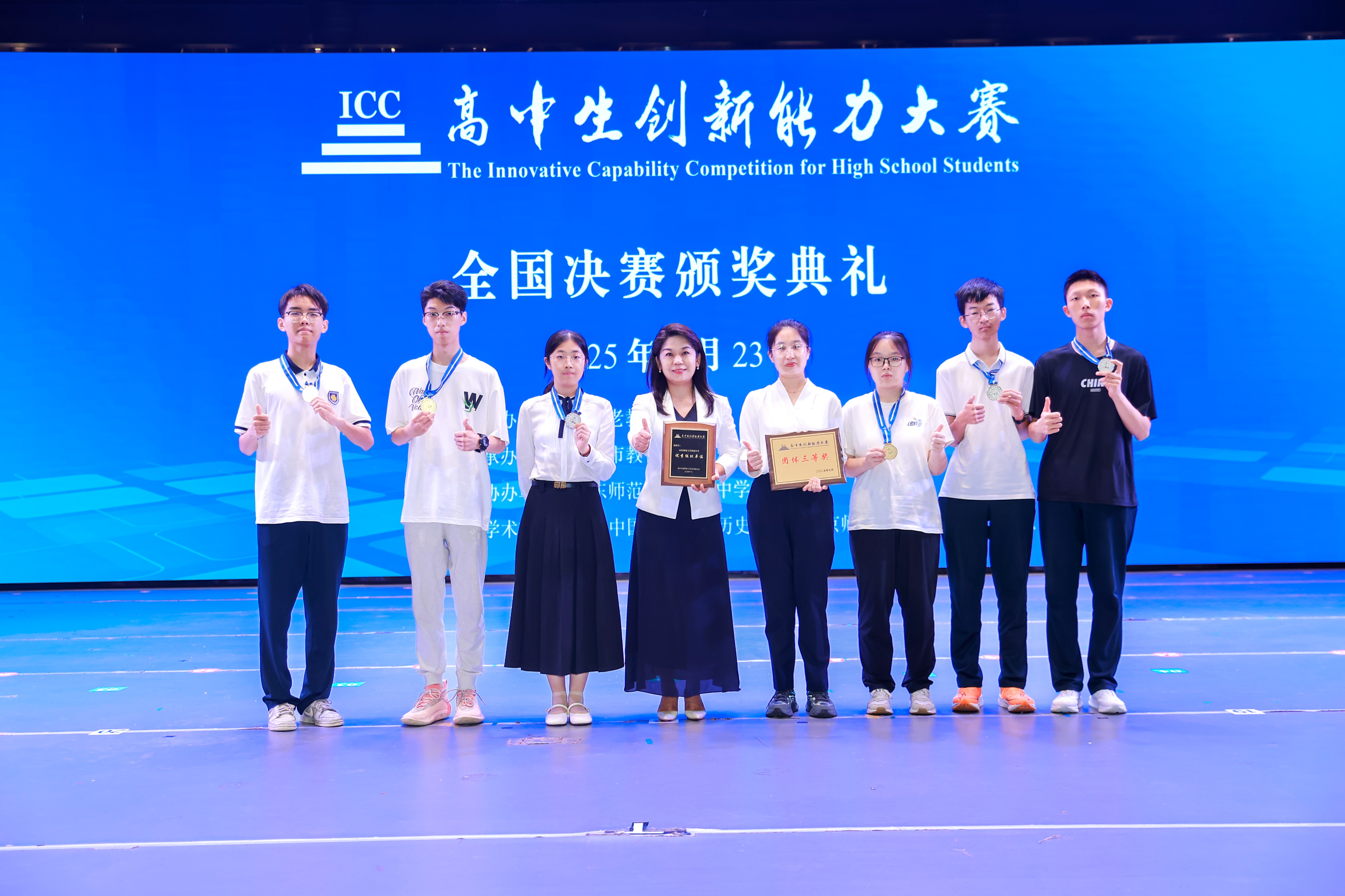 高中生创新能力大赛,是2025至2028学年面向中小学生的全国性竞赛活动,自2019年起连续五年入选教育部公示的全国性竞赛白名单。在2025年全国高中生创新能力大赛复赛中,山东师大附中共获得省级奖项377人,其中一等奖64人,二等奖235人,三等奖178人。山东师范大学附属中学共有15名学生荣获国家级奖项。其中,2024级3班范昊晨(全国总成绩第二名)、2024级31班胡俊溪获全国一等奖金牌;2023级1班杨成欣、2023级2班吴林帅、王梦瑶获全国二等奖银牌;戴莨直等10名学生获全国三等奖铜牌。山东师范大学附属中学同时斩获团体三等奖与优秀组织奖。