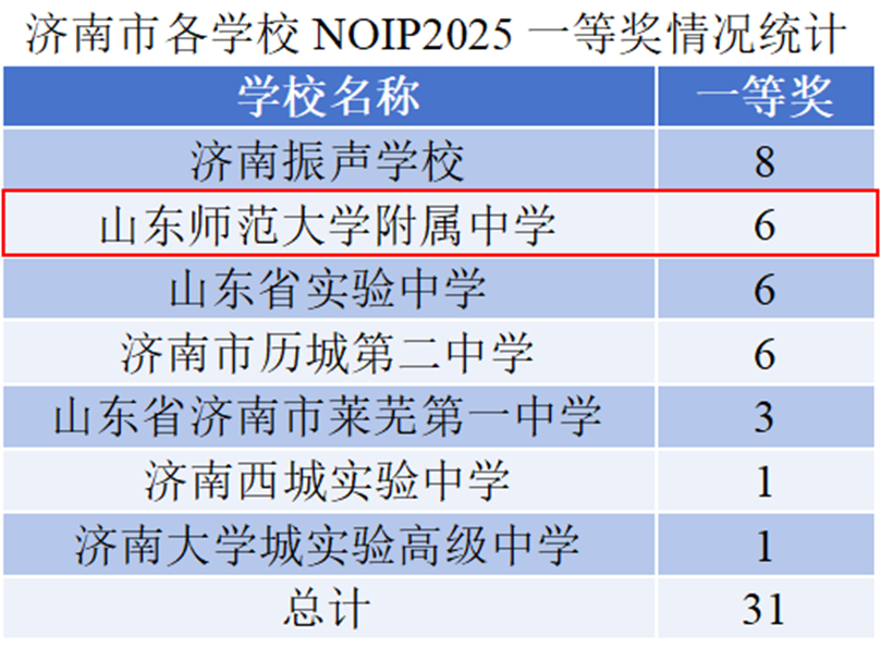 【喜报】6个全国联赛一等奖!山东师大附中学子在2025年全国信息学奥赛(NOIP)中勇创佳绩!